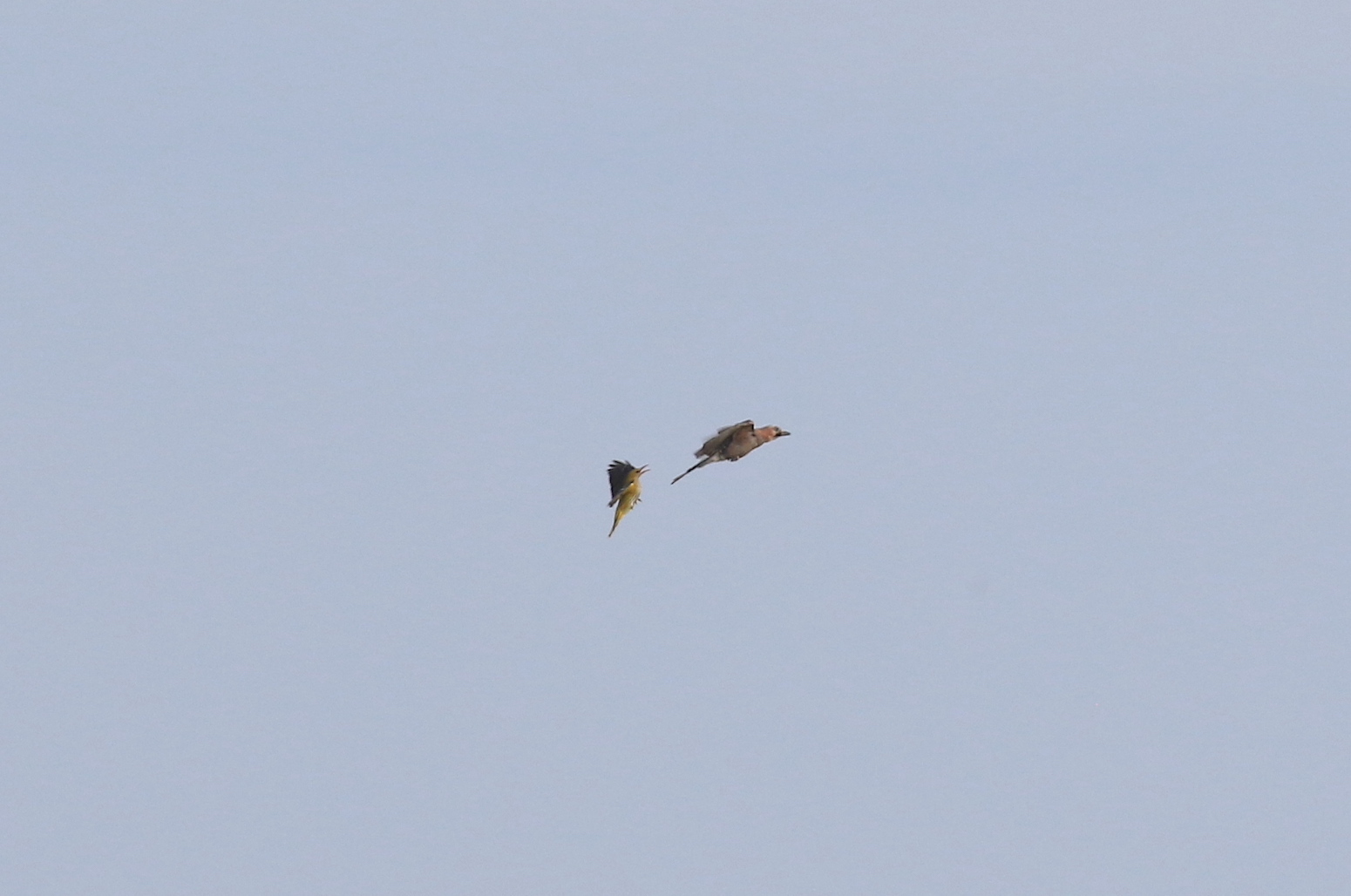 Beskrivelse: Nok en af de mest agressive piroler jeg nogensinde har oplevet. Ud over at den jagtede skovskader, så jagtede denne lille grønne pirol endda også en spurvehøg!!!