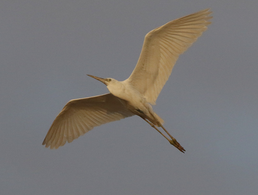 Titel: Revhejre flugt i aftensol
