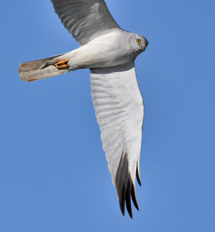 Beskrivelse: Jeg sad ved Juvre på Rømø og så på et par Ringdrosler, da denne han Steppehøg pludselig var over mit hoved, og nåde desværre kun at få dette trekvarte billede af fuglen, før den vende ryggen til og fløj mod nord.