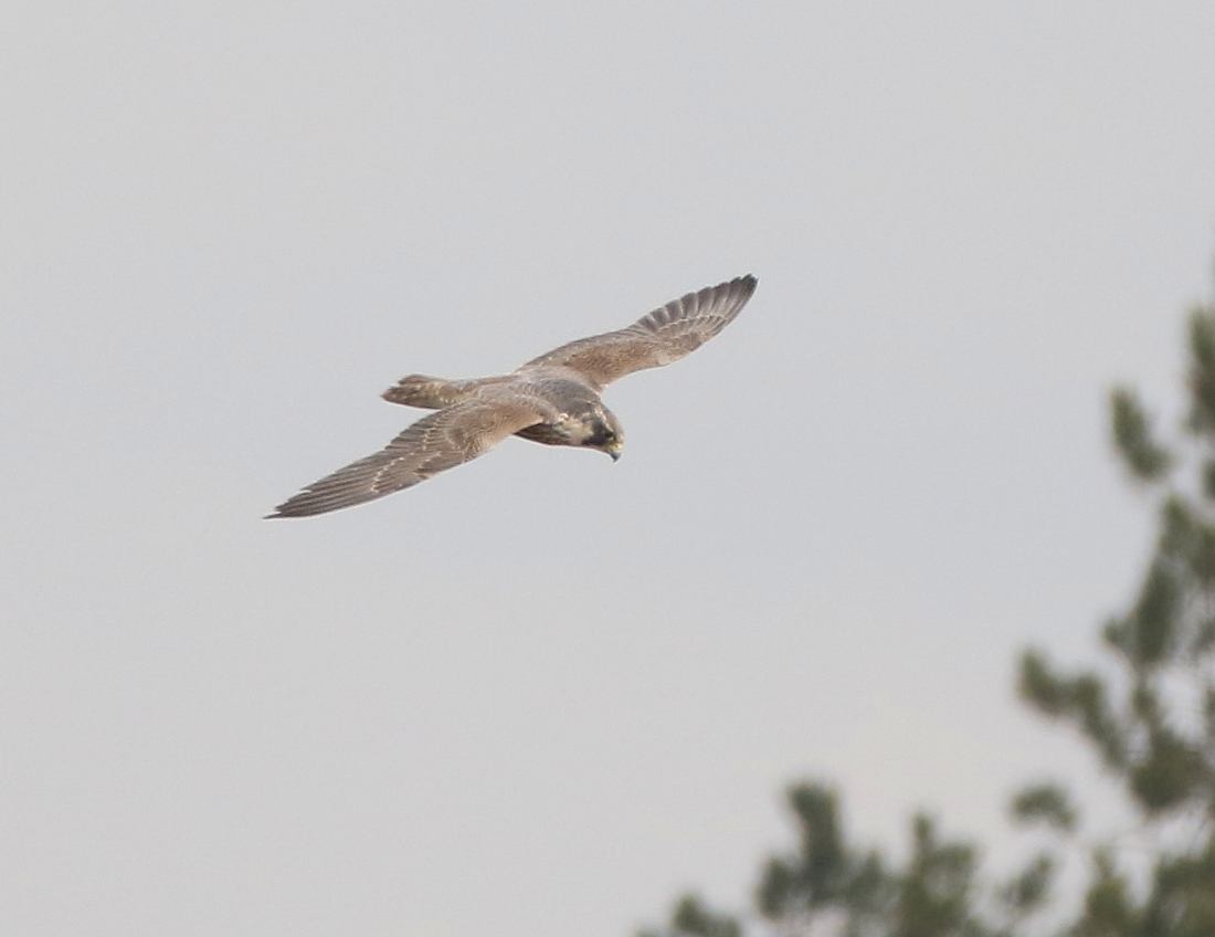Beskrivelse: Slog på agerhøns, men en gråkrage stod i vejen og jog falken væk.