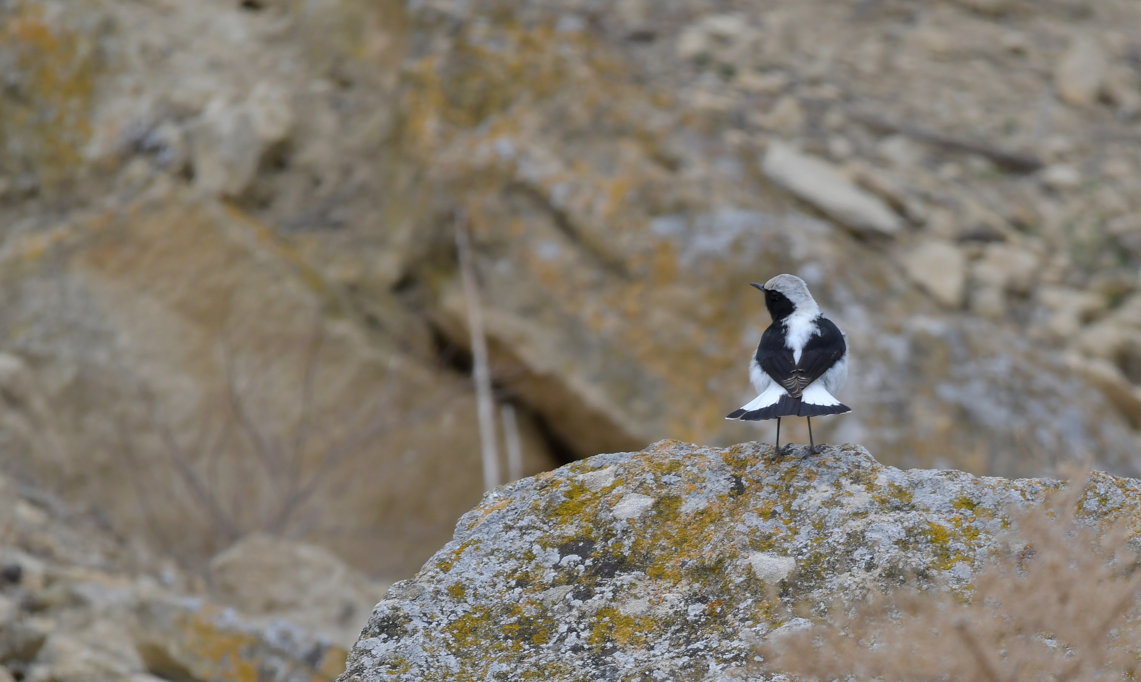 Hvidrygget Stenpikker (Oenanthe finschii) Finsch's Wheatear -