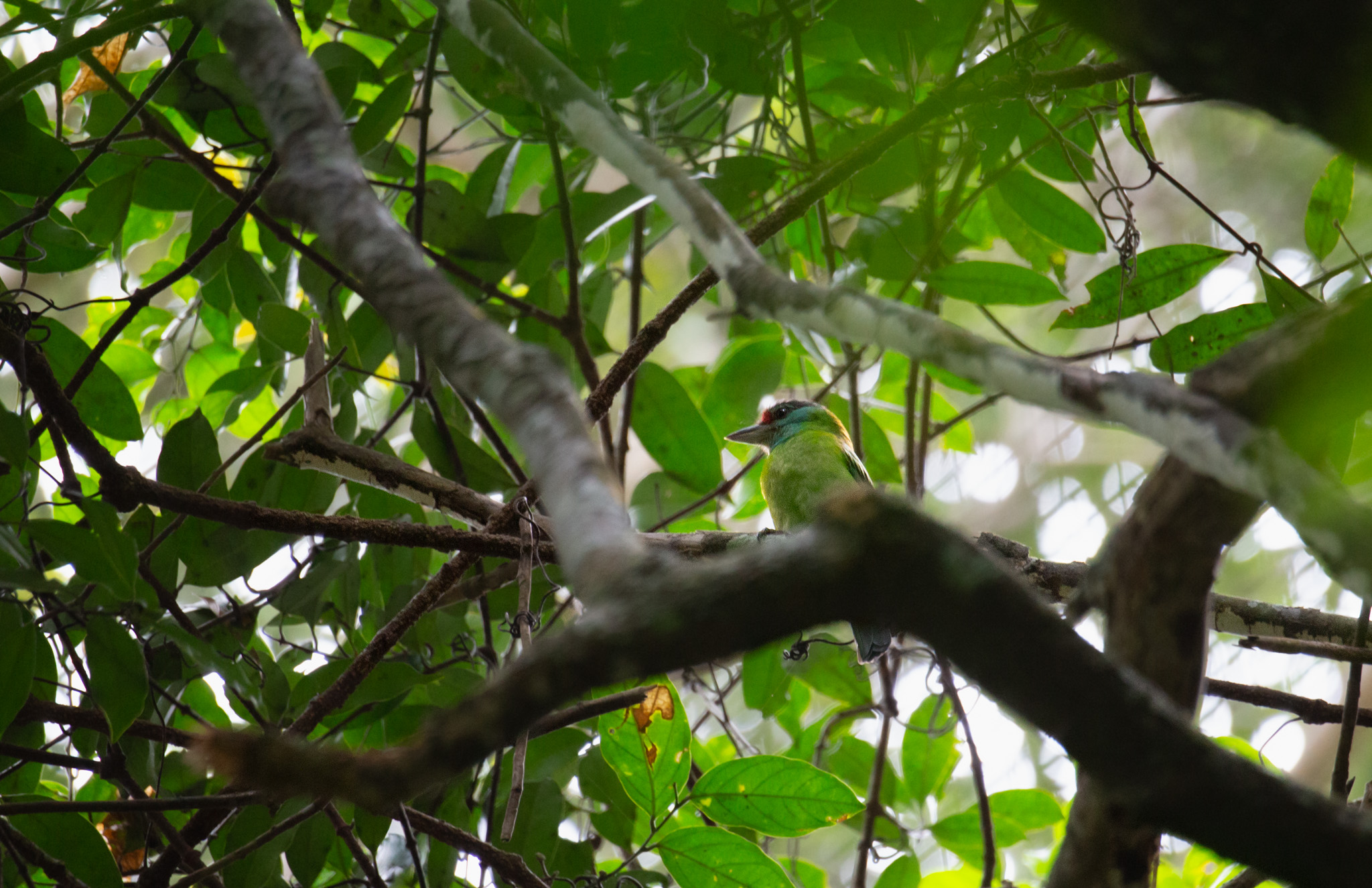 Beskrivelse: Turquoise-throated Barbet er den ene af Thailands kun to endemiske arter. Den har tidligere haft underartsstatus, og dette kombineret med dens svært tilgængelige levested, 800 meter+ på bjergsiderne af Khao Luang, gør at det er en art ikke mange har set. Hvis man vil have chancen, skal man i kontakt med Roger, (rojernow2513@gmail.com) som er en lokal farmer. Hans vandrør følger floden op af bjergsiden, op til levestedet. Man skal dog være obs på det ikke er en nem tur. Den kræver en vild tur bag på en motorcykel, og et hike på nogle kilometer op af bjergsiden inde i junglen, som kræver en god fysik.