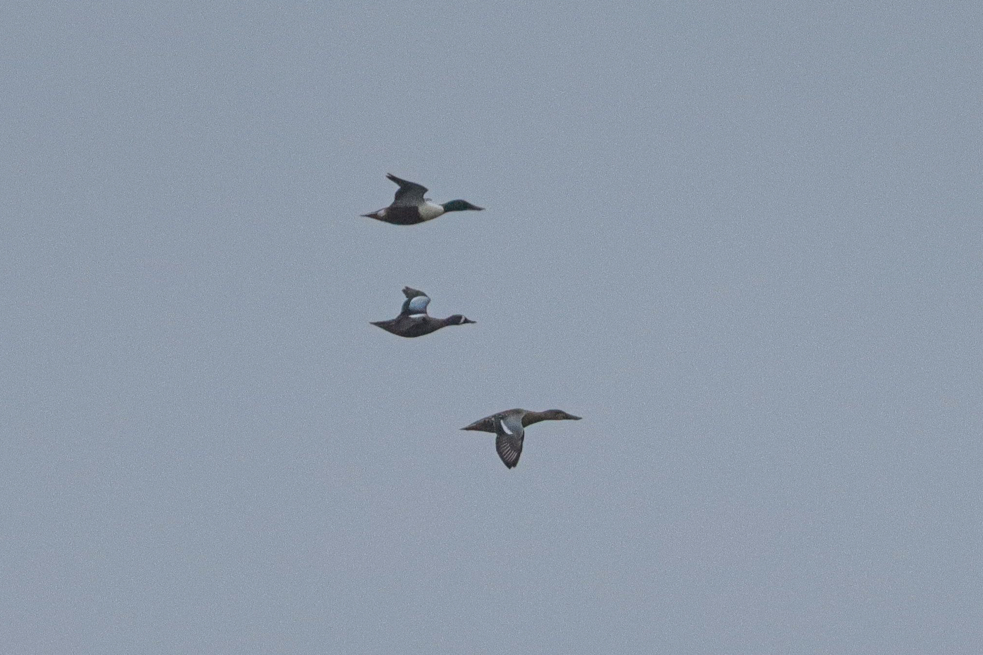 Beskrivelse: Blåvinget and sammen med 2 Skeænder. Fundet af Bent Jakobsen. 23 fund i DK, af i alt 25 fugle.