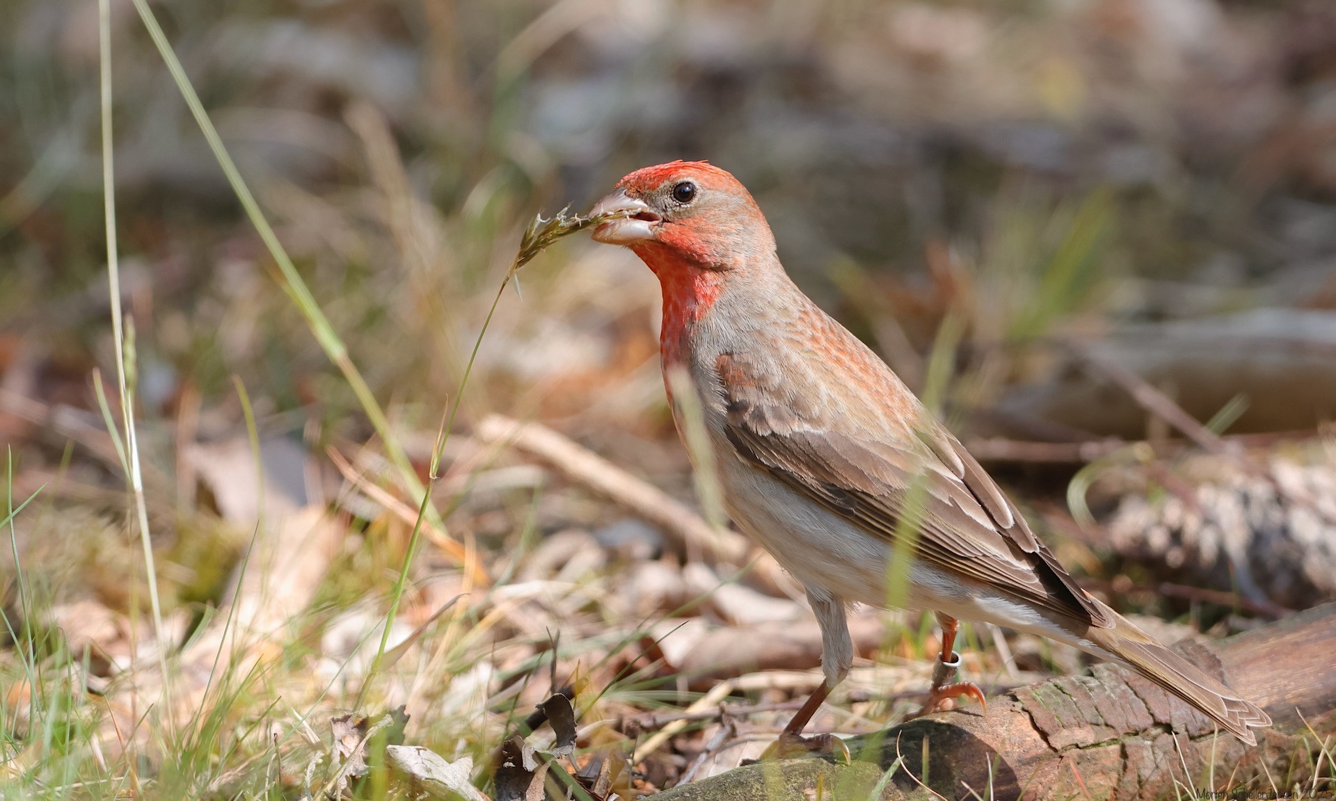 Beskrivelse: På besøg i sommerhushaven. Ringmærket 3K han, ringmærket året før som brun 2K-fugl på Gedser Fuglestation.