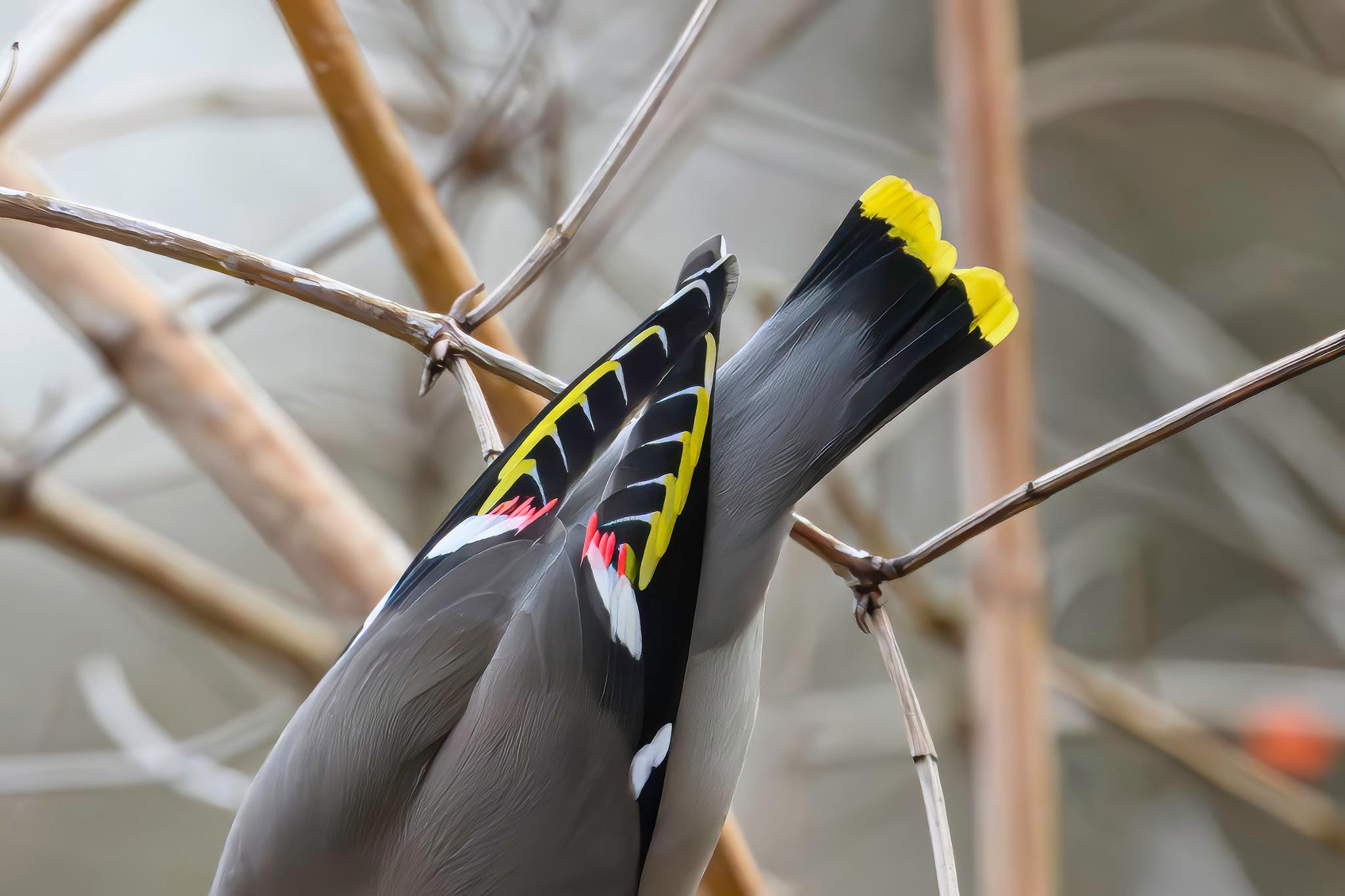 Beskrivelse: Close-up af silkehalens farverige overgump og hale