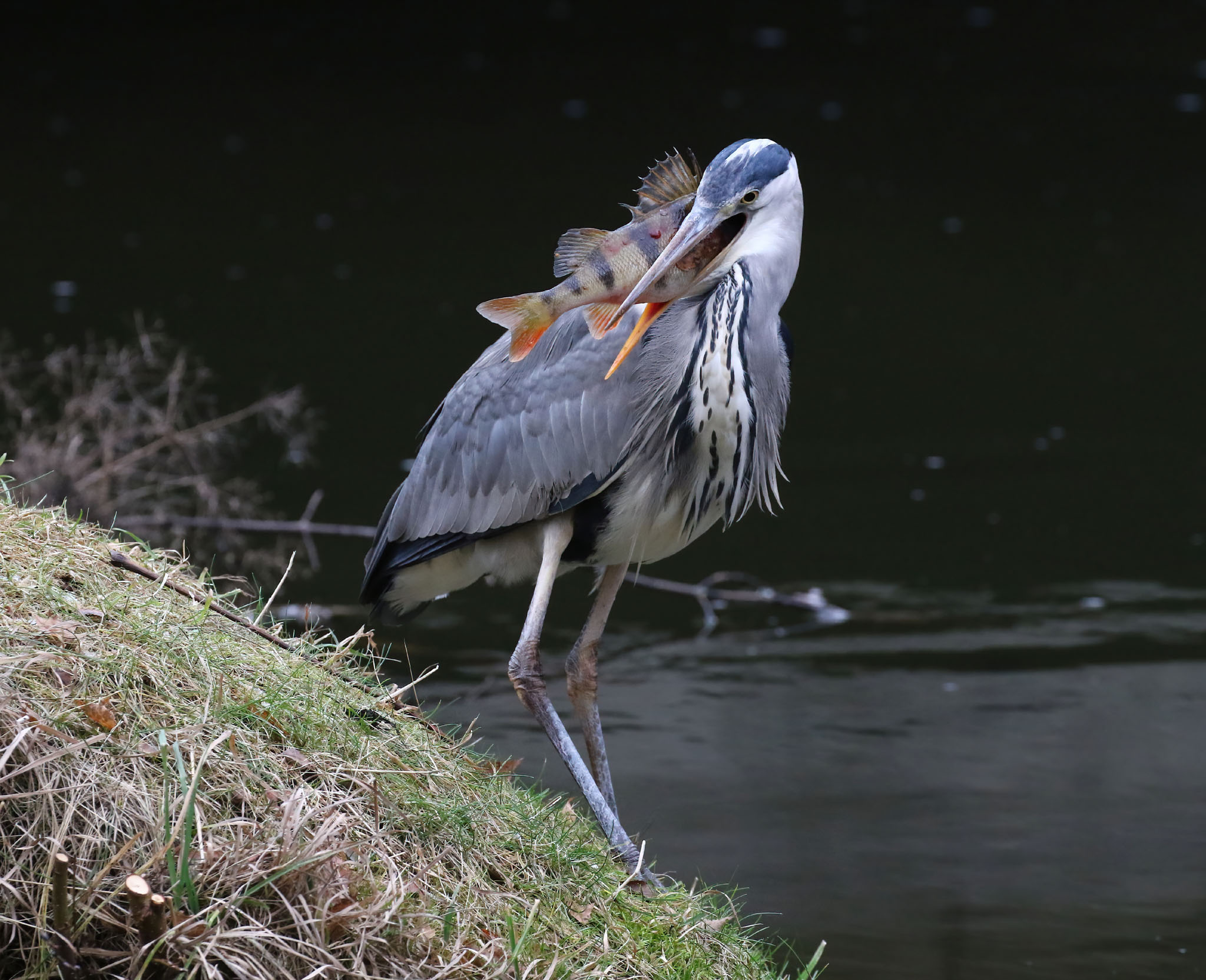 Beskrivelse: Det tog hejren mindst en halv time at sætte denne aborre til livs ;-)