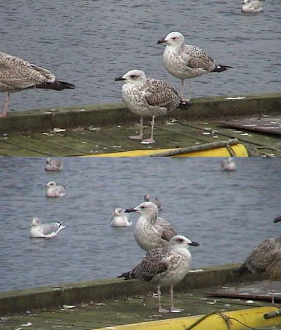 Beskrivelse: Behind the ssp. michahellis a 1cy ssp. cachinnans is seen (another uncommon gull).