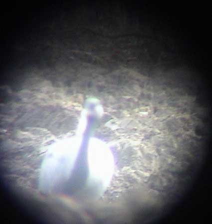 Beskrivelse: A very surprising bird on a Danish field in midwinter! This bird wore a ring and is surely an escapee. The ring could only be seen at a distance less than 150 meters. The bird was probably first seen January 31st when a "crane" flew south only a few kilometers to the north of the field where it was found February 2nd.