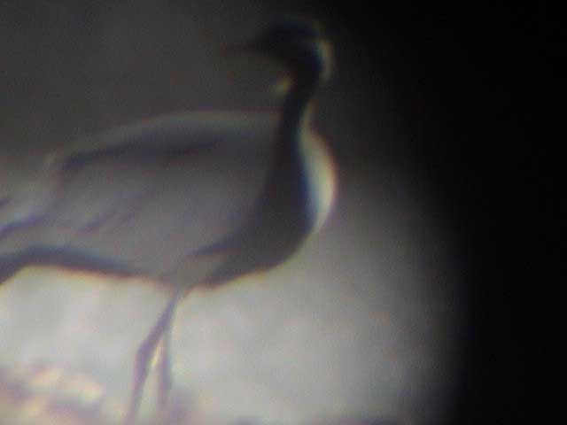 Beskrivelse: A very surprising bird on a Danish field in midwinter! This bird wore a ring and is surely an escapee. The ring could only be seen at a distance less than 150 meters. The bird was probably first seen January 31st when a "crane" flew south only a few kilometers to the north of the field where it was found February 2nd.