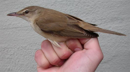 Beskrivelse: The first ever Great Reed Warbler to be trapped and ringed at Blåvand Bird Observatory and only the second ever sighting following a record in May 2000.