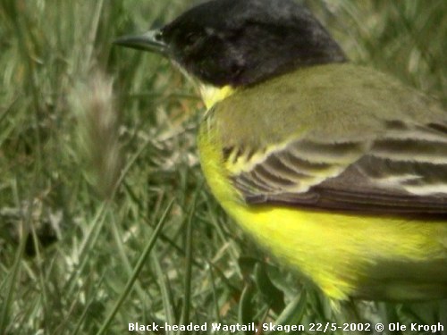 Beskrivelse: This 2cy male Black-headed Wagtail was found 11:25 by Svend Dybkjær at Nedre Mosevej Skagen where it was seen foraging with 25 Grey-headed Wagtails. It stayed at the location until 14:50 where it was seen flying east together with 60 unspecified yellow wagtails.