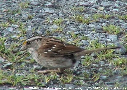 Beskrivelse: At about the 25th of June this singing male White-throated Sparrow was found by the Danish salmon angler Jens Peder Hounisen. It constitutes the first record for Norway.