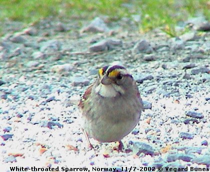 Beskrivelse: At about the 25th of June this singing male White-throated Sparrow was found by the Danish salmon angler Jens Peder Hounisen. It constitutes the first record for Norway.