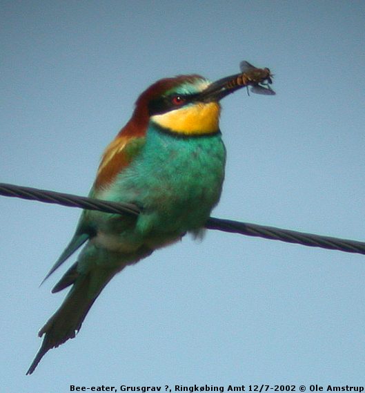 Beskrivelse: Med al sandsynlighed yngler der op til 3 par biædere i en grusgrav på en hemmeligholdt lokalitet et sted i Ringkøbing Amt.