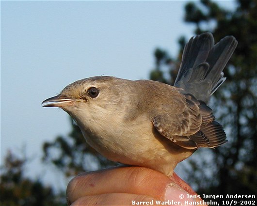 Beskrivelse: 1k Høgesanger fanget i Hanstholm 10. september 2002 af Søren Haaning.