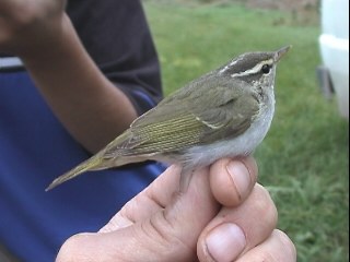 Beskrivelse: This warbler was first identified as an odd looking Artic Warbler. It was caught and ringed at Jæren, Norway on the 30th of September. Kjell Ruud Mjølsnes soon raise a query about the right identification and suggest that this might be an Eastern Crowned Warbler (Phylloscopus coronatus) the 2nd ever recorded within WP boundaries. The first being a bird trapped at Helgoland, Germany, October 4th 1843. More pictures of this bird can be seen <a class='link' href='pictures.php?id=listpictures&species_id=895&country_id=6'>here</a>.