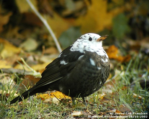 Beskrivelse: Solsort han - partiel albinistisk.