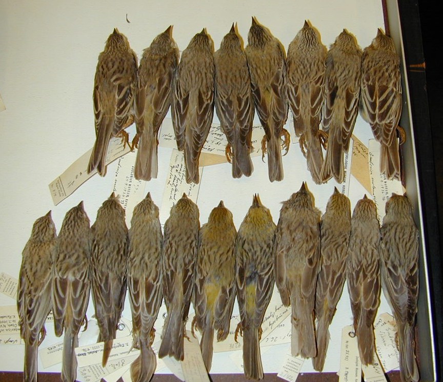 Nederst fra venstre Br.V. nr 6-7, de eneste med generel gul underside, adulte hunner. Kraftig lysende gul overgump, samt gul nakke og bundfarve af isse, som endvidere er iblandet rusttoning på pande.