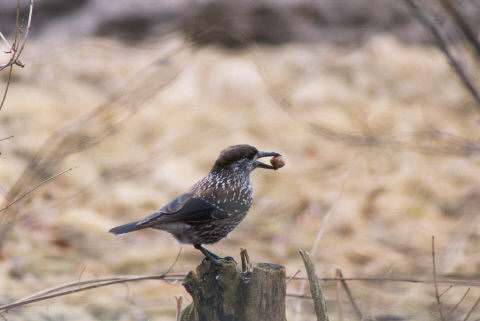 Nøddekrige (Nucifraga caryocatactes) Spotted Nutcracker -