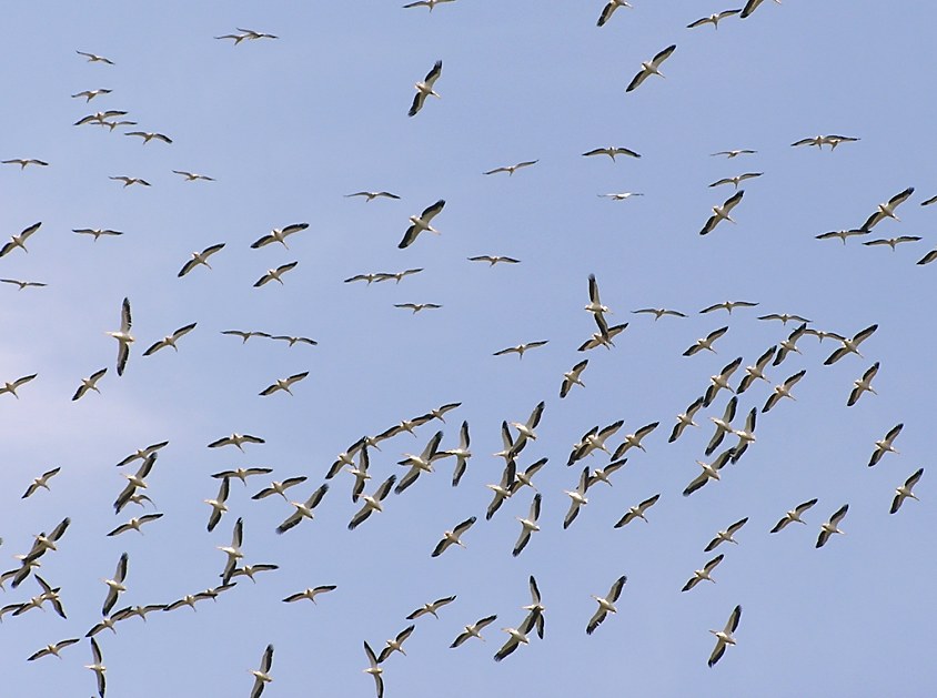 This picture was taken, on a DOF tour (Danish Orthological Association, leaded by John Speich) to the Rumanania / Donau Delta. The hotelboat went of from Tulsia west through the canals. Maybe some 1200 pelicans was in the air over the boat at the same time! .