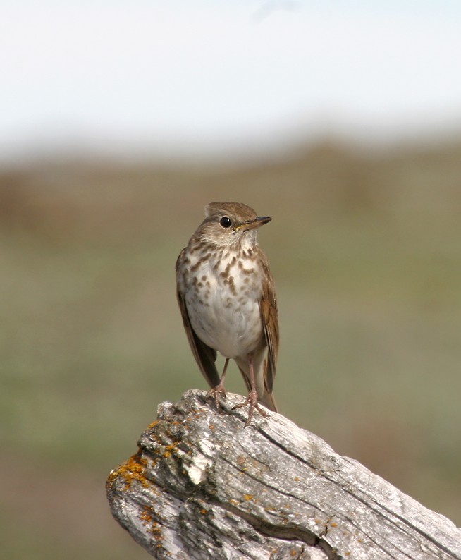 Beskrivelse: I perioden 2-14 juli var der en af de små amerikanske drosseler på Grønne Ejland i Disko Bugt, og på trods af kun en utydelig øjenring er fuglen bestemt til eneboerdrossel. Fuglen var ekstremt sky, opholdt sig skjult i skyggen og meget vanskelig at komme på "foto-hold" af.