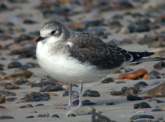 Beskrivelse: Mågen blev stående på stranden indtil man kom ca. 5 meter fra den. Derefter begyndte den at gå lidt væk. Senere viste det sig at den udmærket kunne flyve og tilsyneladende ikke fejlede noget.