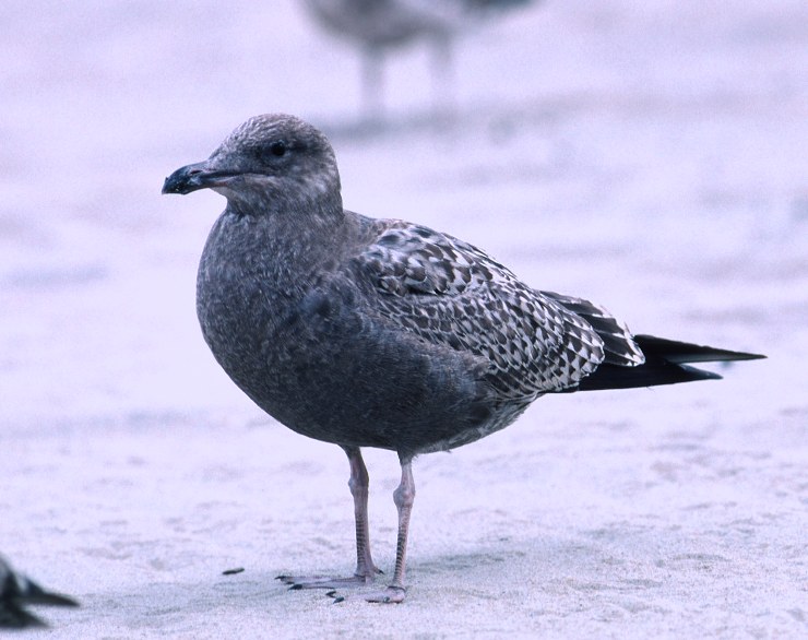 En typisk mørk smithsonianus - repræsentativ for østamerikanske fugle. Bemærk den rent tegnede mørke bug, og at striber på oversiden stort set kun findes på hovedsiderne. Tertiærerne ligner her Sildemåges (eller Kapisk og Middelhavssølvmåges) med sort center og smalle lyse rande omkring spidsen. Nye 1. vinterfjer generelt med bredere mørke, mere udflydende tegninger end hos Sølvmåge. De store dækfjer på dette individ afviger ikke fra hjemlige Sølvmågers.