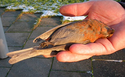 Beskrivelse: Fuglen fløj d. 19. nov. 2004 imod en rude på hendes bopæl i Fjaltring, Ringkøbing Amt og blev fundet død. Hun bestemte den til en Krognæb, tog disse billeder af fuglen og kontaktede mig. Dette er - så vidt jeg ved - første fund af denne art i Ringkøbing Amt. Billederne indsendes efter aftale med Inger Skov. Med venlig hilsen Allan Kjær Villesen