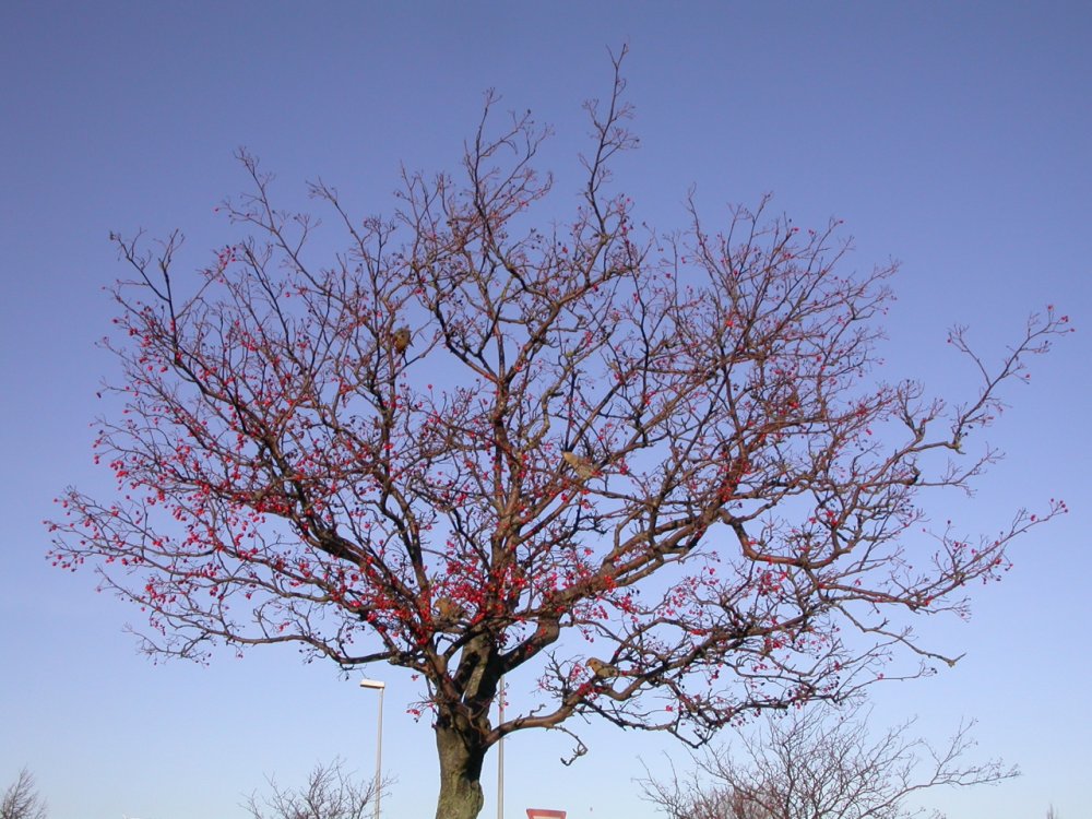 Beskrivelse: Et billede af hele Frederikshavnflokken og deres foretrukne fourageringselement. Den femte fugl er svær at se, men den er der.