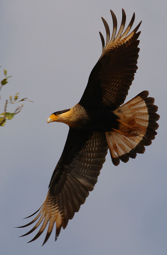 Fuglen har gult ansigtsskin. Jeg har set caracaraer i Pantanal i september, hvor halvdelen havde gult skin og resten af de voksne fugle havde rødt skin. Jeg har set Crested Caracara i USA og Mexico i januar, marts, april og september, og jeg har ikke set nogen med gult skin, så måske kan mine observationer være til hjælp for nogen når de ser caracaraer i blandingszonen, et sted i mellemamerika.