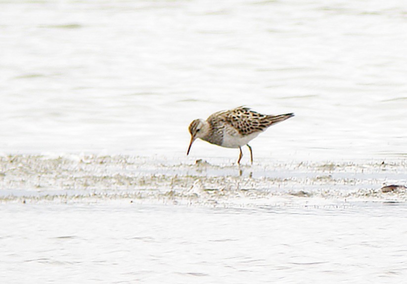 En del fik set fuglen igår. Indrømmet er det ikke en "mega", men en regelmæssig raritet, der vakte stor glæde hos en del besøgende igår, hvoraf mange på søndagsudflugt, der her fik sig en ny art - og kunne komstatere, at arten er ret karakteristisk. Læg især mærke til det tætstribede bryst, der er meget skarpt afgrænset fra den hvide bug, oversidens dværgrylemønster (der hos denne fugl var tydeligt selv på afstand) og de ret svage hovedtegninger, hvor et hvidligt øjenbryn er den mest påfaldende karakter. Samt de grøntonede, ret lange ben. Helhelsindtrykket, når fuglen ivrigt åd sig gennem mudderbankernes ta-selv bord var som en ret lys stor udgave af en småryle - sammen med Brushøns og Tinksmede lysere og koldere brun (med en oliven undertone) og meget lange vinger. Den kan virke pukkelrygget under fødesøgning.
