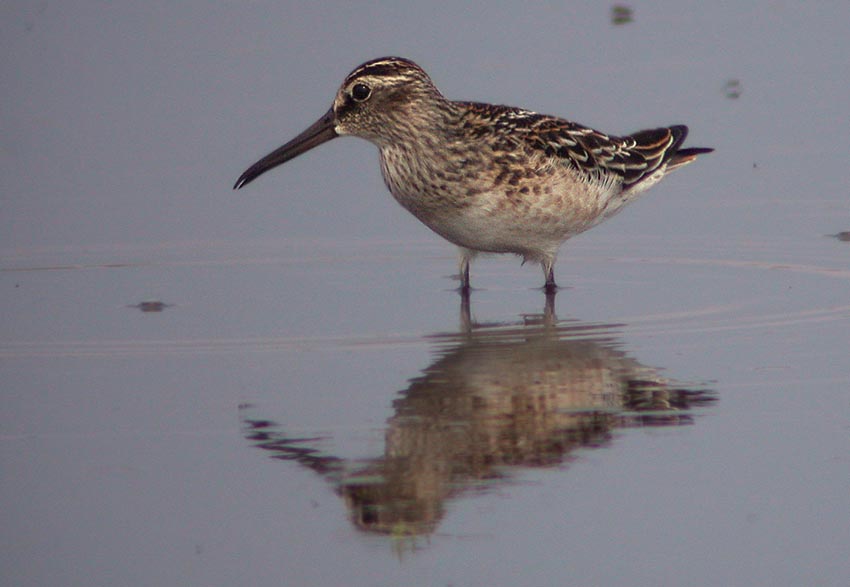 De fire kærløbere stod sammen i en flok på kun ti meters afstand af fotograferne. Jeg husker, at jeg studsede over en af fuglene som havde lidt mere stribning på brystet end de andre - det har nok været fuglen på billedet. Jeg ville nu forvente, at en adult ville være mere sortagtigt stribet på brystet og uden de fine hvide linjer og friske fjer på ryggen?