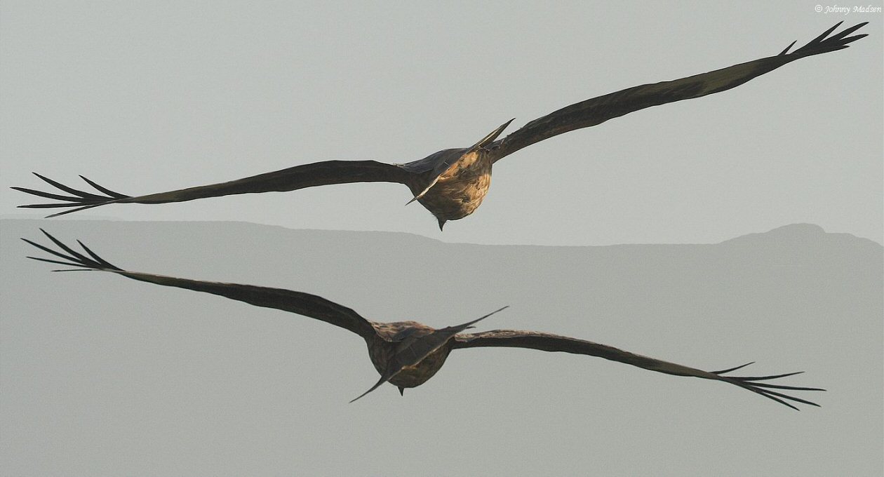Det som fik mig til at ændre mening var antallet af frie fingre, som ser ud til at være 5, hvor Sort glente har 6 og specielt det store lyse felt i hånden, som går helt hen til bagkanten af vingen, men jeg forstår godt, hvad du mener. Det var vel det, der fik mig til at bestemme den til Sort glente i første omgang.