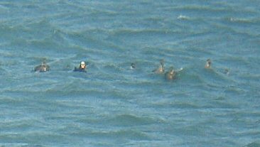 Beskrivelse: Fuglen lå på ca. 300 meters afstand i en flok på 24 Sortand hunner.