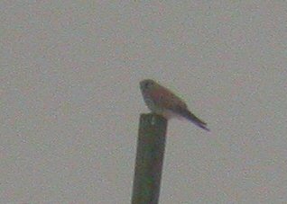 Beskrivelse: Denne Tårnfalk sp. blev opdaget på de meget lyse undervinger. Umiddelbart ser den tilmed korthalet ud. Det er sandsynligvis en 2k han, men dette er dog ikke sikkert. På intet tidspunkt kunne det afgøres om klør var lyse eller mørke. Er der nogen som vil give et bud på, hvilken art det er? Kan Tårnfalk have så bemærkelsesværdige lyse undervinger? Det skal hermed gøres opmærksom på, at falken på intet tidspunkt i dag er set godt og på kort afstand. Det mørke vejr er skyld i de dårlige billeder. Falken vil blive eftersøgt i morgen.