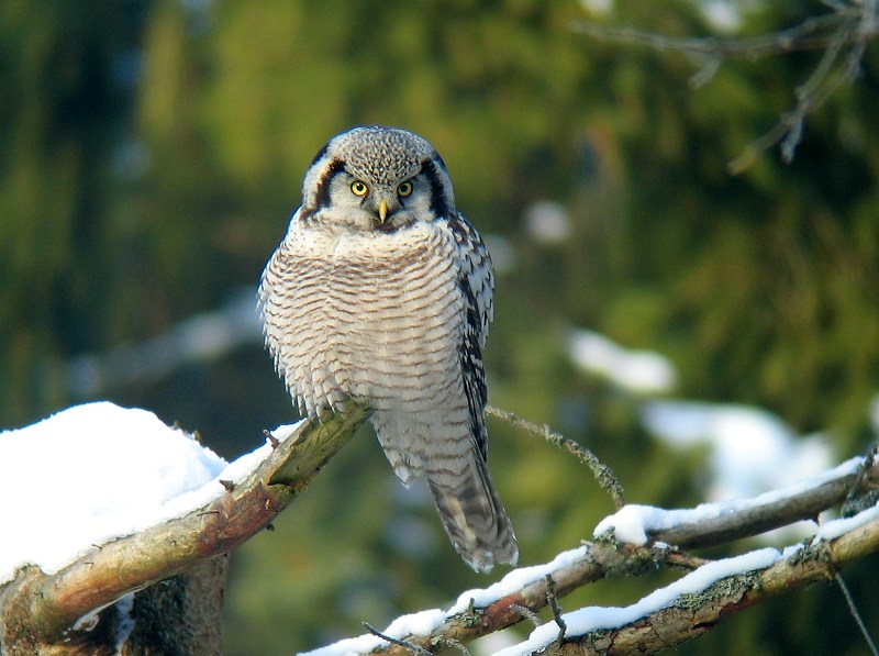 Beskrivelse: Uglen sad i det lille stykke skov, der går ud mellem de to parkeringspladser ved 8-vejskrydset.