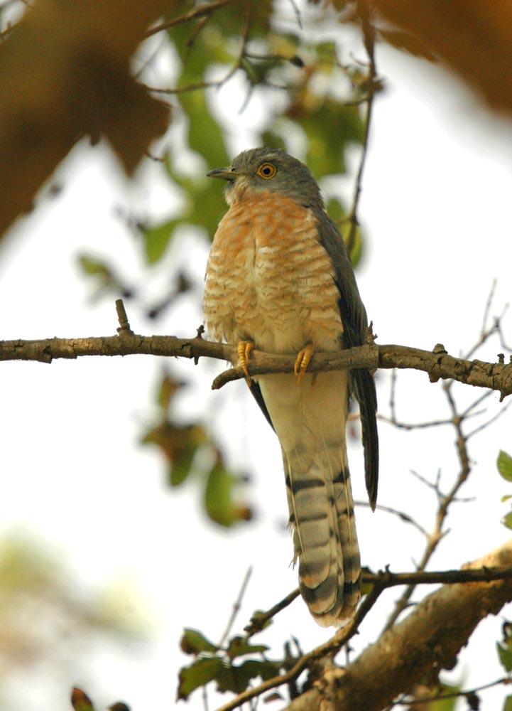 Er vist snarere end en Common Hawk Cuckoo (Hierococcyx varius), der er den udbredte Hawk Cuckoo i Indien. Lys strube, rent grå ryg og orange bryst og ditto striber på bugen støtter dette. Large Hawk Cuckoo er sommergæst i Himalaya og bør i februar være i Sydindien.