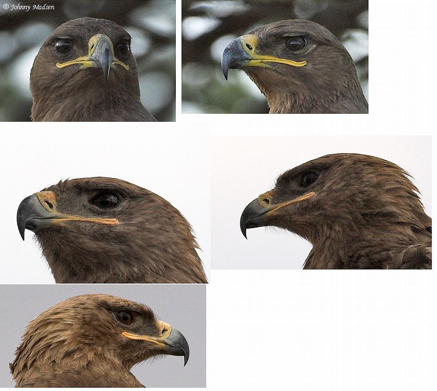 De tre nederste ligner mest Rovørne (mundvig når ca. til øjets midte!). Vinklen på de to øverste gør det svært at bedømme, men de ligner Steppeørne (havde nu været rat, med lidt mere af fuglene...).