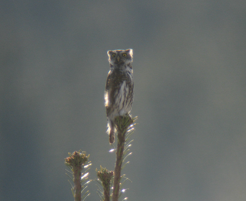Beskrivelse: Spurveuglen har netop set en Skovsneppe komme piskende forbi.