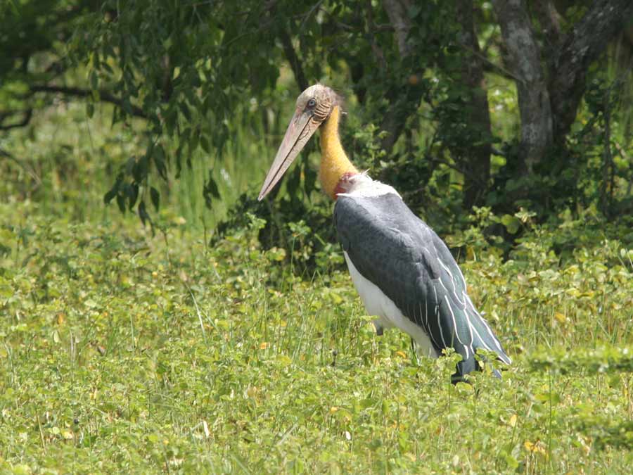 Lesser Adjutant er vitterligt en af de hæsligste fugle man kann se for sine øjne - det ser ud som om fuglen bærer en Lordi-maske over den smukke gule hals!