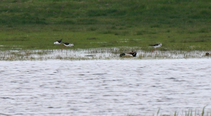 Beskrivelse: "Dokumentationsbillede". Her ses 3 af de 4 stylteløber ved Geddal Enge den 22-5-2005