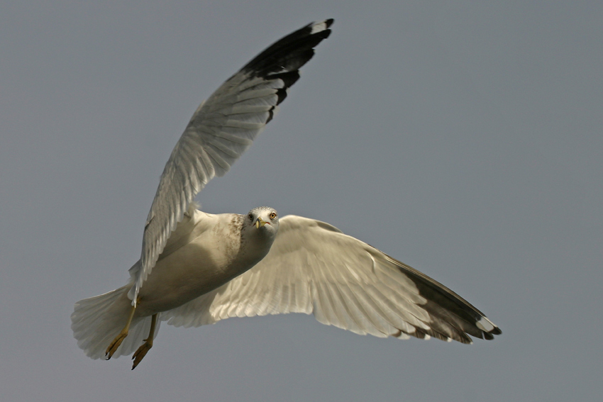 Beskrivelse: Det er egentlig et gammelt billede, men jeg uploader det lige fordi det er et O.K. foto, der viser alle kendetegnene på en adult ringnæbsmåge.....