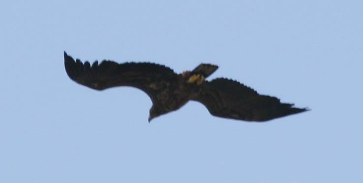 Beskrivelse: Kan nogen hjælpe med en sikker identifikation af denne ørn, som jeg mener er en lille skrigeørn? Set Vester Vandet, Thy, 6/5 -06, kl 16.30.Træk NØ. Vh Peter Halkier