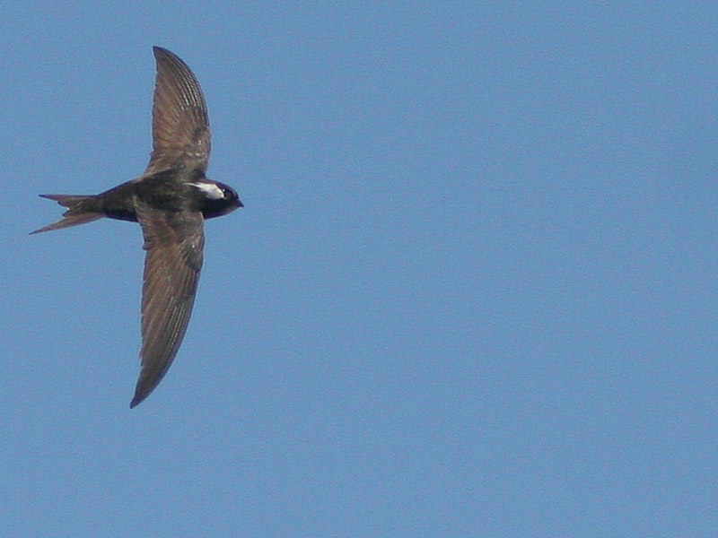 Beskrivelse: "Partiel albinistisk Mursejler med hvid musvitkind!". Næppe, da der må være tale om en hvid fjer, der bæres til reden. Pletten er i den anden side en anelse mindre, hvorfor hovedtegningerne ser uregelmæssige ud.