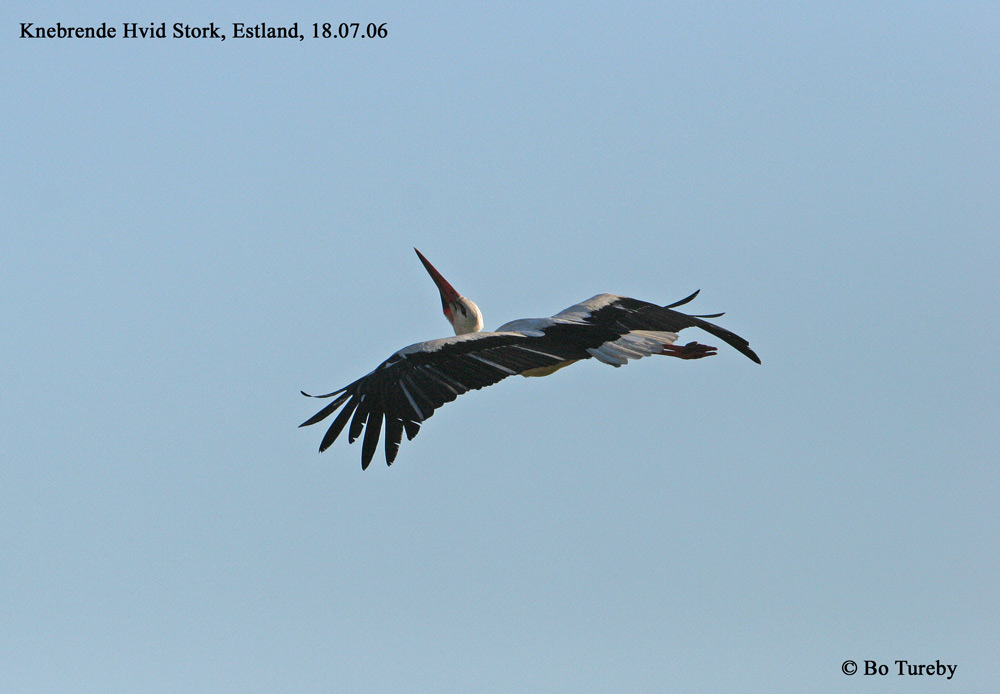 Titel: Storken knebrede med næbbet i flugten