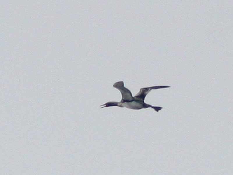 Beskrivelse: Sortstrubet Lom i sommerdragt. En jizz-mæssigt speciel fugl, der viser særligt store, trekantede fødder samt flyver med åbent næb - begge "kendetegn", der normalt forbindes med Islom/Hvidnæbbet Lom. Bemærk dog den noget ranglede fremtoning (pubertetsagtig fremfor de store lommers reelt magtfulde!) og manglen på "gravid" mave.