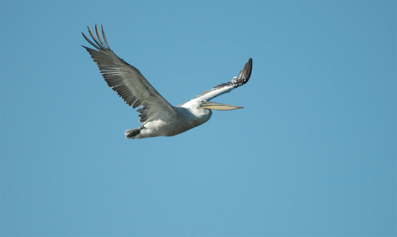 Lørdag aften (5. august) havde jeg fornøjelsen af at se denne flotte pelikan i en times tid omkring kl. 19 ved Ørum Sø i Thy. Den opførte sig på alle båder som en vild fugl. Den fiskede ivrigt og den fangende rigtig mange fisk, eller hvad det nu var den guffede i sig. Den jagede jævnligt fiskehejrer væk fra de nærmeste omgivelser, ligesom den selv blev jaget med af en emsig knopsvane. Pelikanen lettede jævnligt og lavede lange flotte flyveopvisninger i aftenlyset med langvarig glideflugt på opvindene langs søbredden.