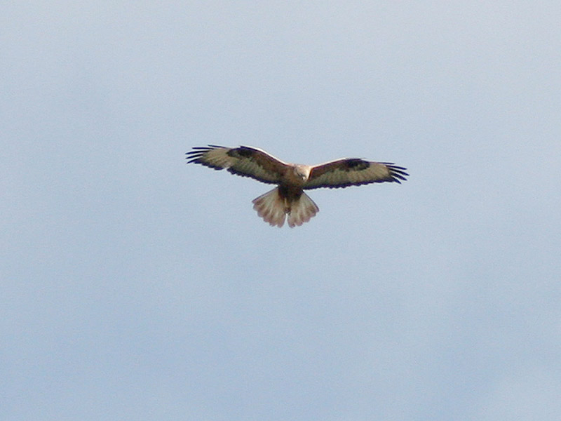 Beskrivelse: Musende Ørnevåge med ret tydeligt, rustbrunt endebånd på halen. Fuglen typisk, stor og fjeldvågelignende fugl med rustbrune undervingedækfjer, mørk bug og knopletter.