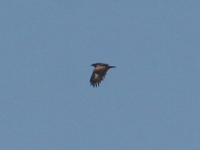 Beskrivelse: Denne, Falsterbo Lille Skrigeørn nr. 2 trak over Falsterbokanalen 10.9 2006 kl. 11.43. den havde tilsyneladande ret ensartet vingebagkant med ganske smalle lyse spidser, ligesom små og mellemste overfingedækfjerene var lyst sandfarvede og ret ensartede. De store dækfjer var mørke med maget smalle lyse spidser. Ensartetheden antyder en meget slidt juvenil dragt, men kraftigt slidt, og fuglen havde fældet de inderste håndsvingfjer. Dette siger 2K.