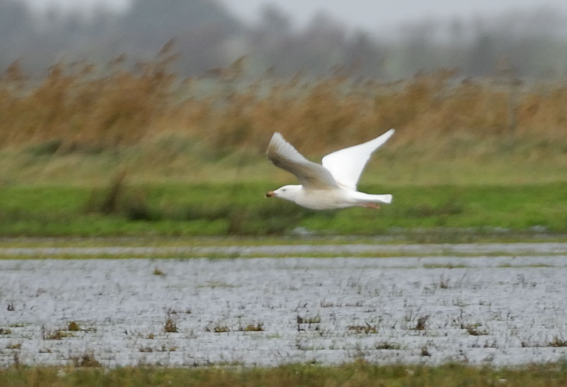 Beskrivelse: Den er set 4.11.2006 kl 15.00 ved Vest Stadil Fjord, hvor den rastede mellem Svartbage på engene i Mellemdyb. Den var ca. af samme størrelse som Svartbagene. Den var helt hvid, og havde ikke noget (i hvert fald ikke ret meget) gråt eller beige anstrøg. Gulligt næb med stor sort næbplet og lille lys spids, sort øje og lyserød benfarve stemmer meget godt med 1K Gråmåge, men kan de være helt hvide?... eller er det en leucistisk sølvmåge eller svartbag?